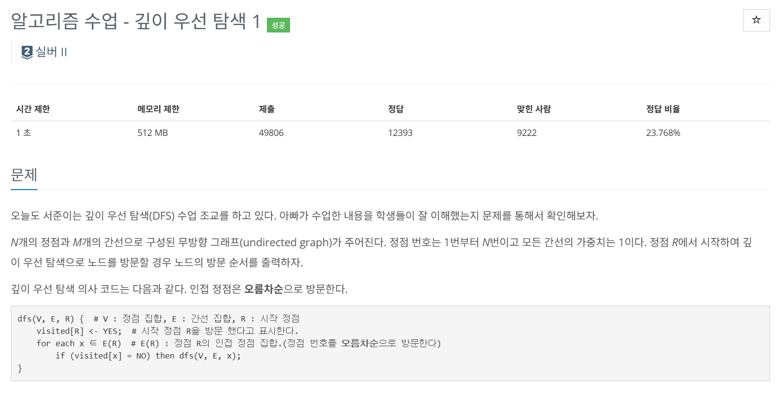 백준의 "DFS와 BFS" 문제(문제 번호: 24479)는 그래프 탐색 알고리즘 중 깊이 우선 탐색(DFS)을 구현하는 문제입니다. 주어진 그래프에서 특정 시작 정점으로부터의 방문 순서를 출력하는 것이 목표입니다.