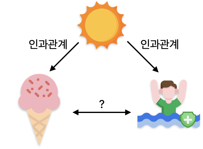 일반적으로 변수 간의 관계를 확인할 때 상관관계를 이용하지였지만, 단순한 상관성만 확인해서는 인과관계를 명확히 밝힐 수가 없습니다. 예를 들어, X가 Y의 상관성이 높게 나타났을 때는 3가지 경우가 있을 수 있습니다.