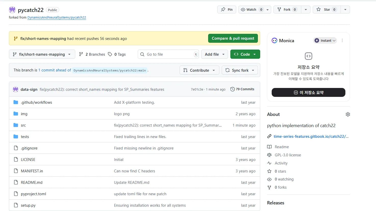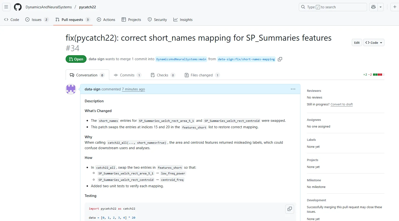 Feature Engineering 관련 업무를 진행하다 22개의 주요 피쳐를 추출하는 pycatch22의 파이썬 패키지에서 잘못된 점을 발견했습니다.