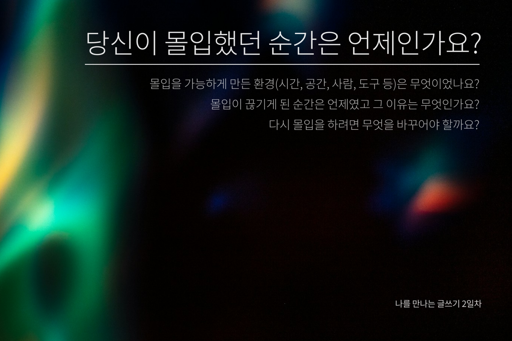 [나를 만나는 글쓰기] 2일차 : 당신이 몰입했던 순간은 언제인가요?