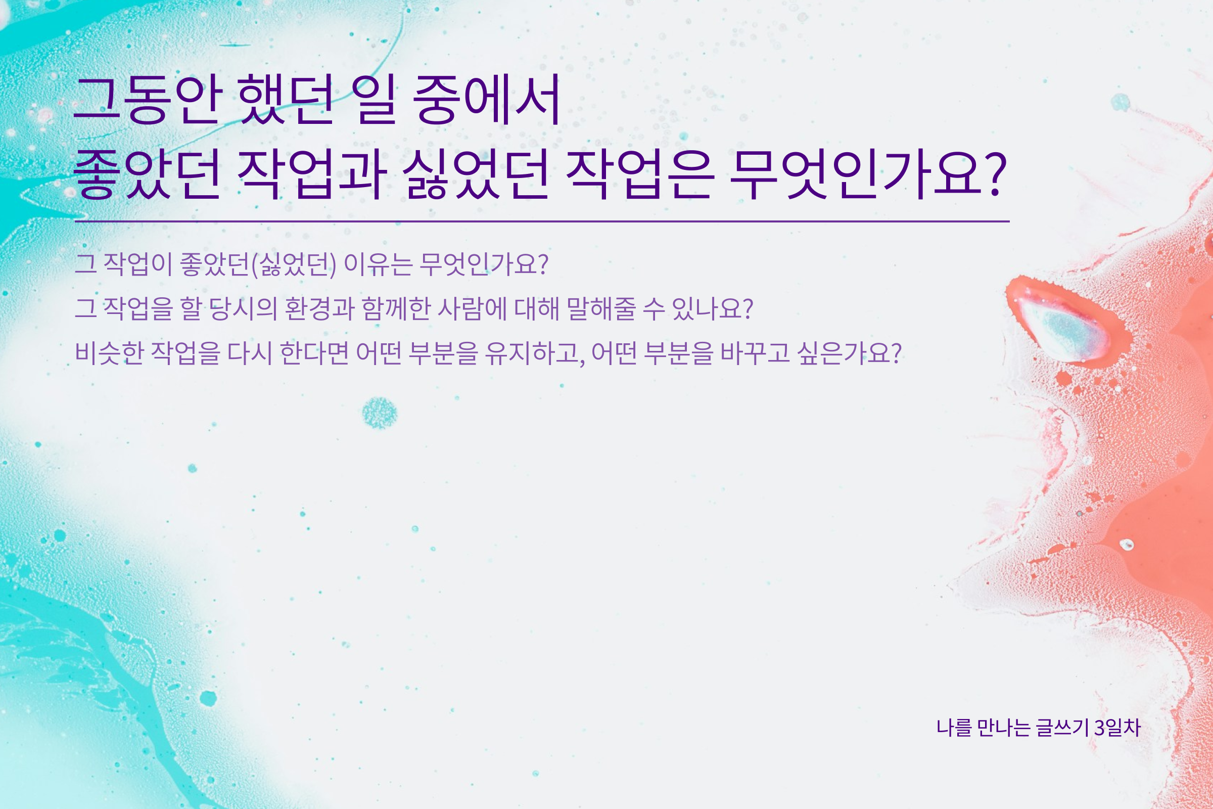 [나를 만나는 글쓰기] 3일차 : 그동안 했던 일 중에서 좋았던 작업과 싫었던 작업은 무엇인가요?